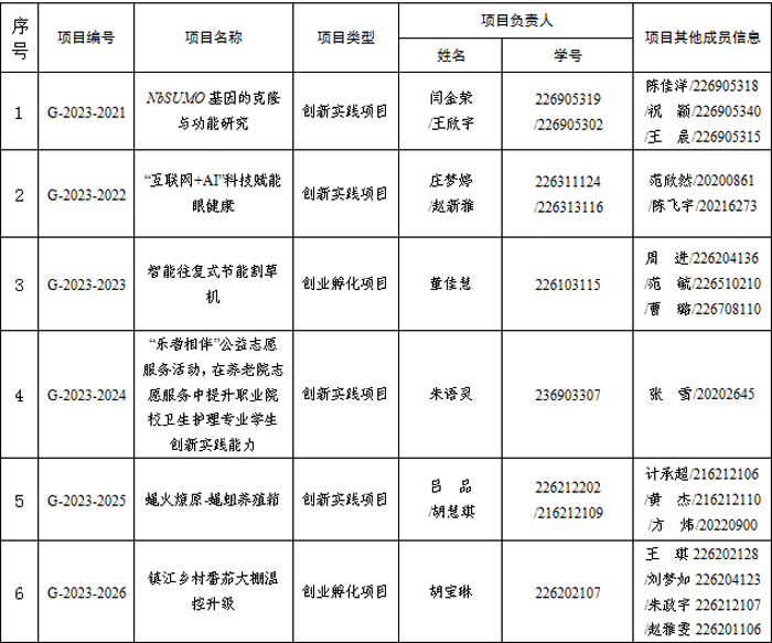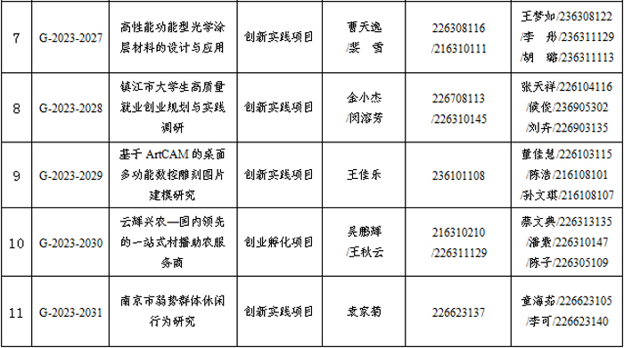 2023年11月以来,省教育厅职教处首次启动了2023年职业院校学生创新创业培育计划项目申报工作,我校根据《省教育厅关于做好2023年职业院校学生创新创业培育计划项目申报工作的通知》(苏教职函〔2023〕36号)文件要求,经过有序组织、重点培育、按时申报、专家评审,11个创新创业培育计划项目获批省级立项。