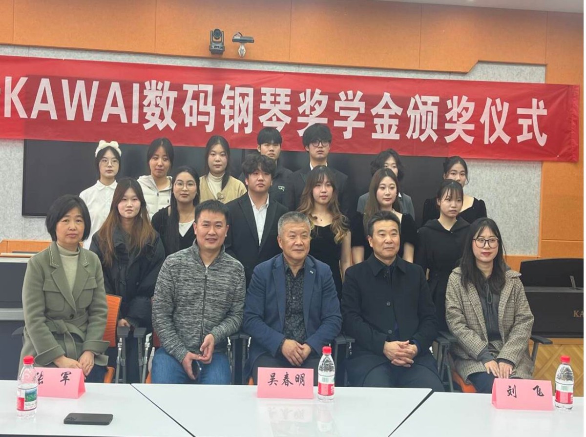 近日,学院“KAWAI数码钢琴奖学金”颁奖仪式暨选手展示音乐会,在2号楼102智慧教室顺利举行。本次活动依托学前教育专业二年级学生弹唱比赛开展,旨在表彰优秀学子、搭建专业技能展示平台,进一步深化校企协同育人成效。南京KAWAI公司总经理张军、南京瑞声商贸有限公司总经理刘飞,学院院长吴春明、副院长郦腊凤与相关专业教师,共同出席活动。吴春明院长致辞 活动伊始,吴春明院长致辞,他对南京KAWAI公