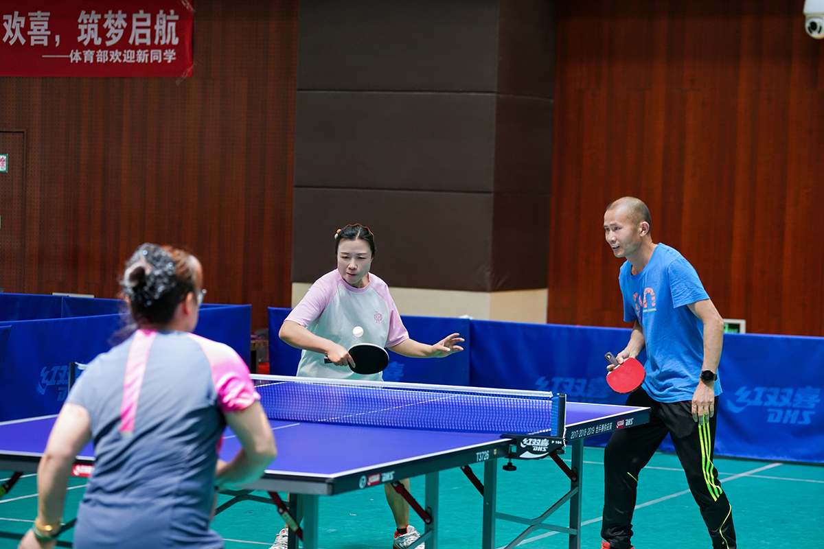 大赛吸引了来自全校二级工会组成的18支代表队的积极参与,充分展现了教职工们团结拼搏、奋勇争先的精神风貌。各代表队经过抽签分组,展开了激烈的小组循环赛。参赛教职工们以饱满的热情投入到角逐中,推挡扣杀间尽显精湛球技,展现了高超的竞技水平。决赛阶段,各队精心排兵布阵,斗智斗勇。选手们时而稳守反击,时而犀利进攻,精彩的比赛场面赢得了现场观众的阵阵喝彩。紧张激烈的赛事氛围与教职工们的蓬勃朝气交相辉映,为比赛增添了更多的精彩瞬间。