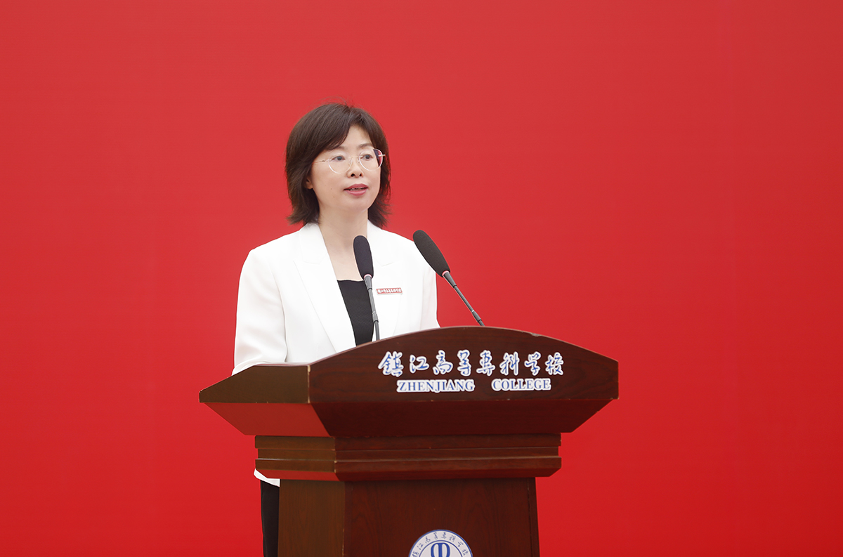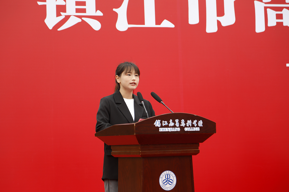 随后,校长李莉从爱国、爱校、强技能三个维度给同学们讲授了“成长课”。从陈怀民对撞敌机的壮烈,到许杏虎捍卫和平的牺牲;从焦山炮台的抗战遗迹,到吕凤子先生创办正则学校并三迁校址的坚守。校长李莉特别讲述了镇江儿女的爱国故事,在厚重的历史叙事中,引导同学们深刻认识自身肩负的时代使命,从伟大历史进程中汲取前行力量,握紧历史“接力棒”,以爱国之情筑牢理想信念根基,把爱国情、报国志转化为实际行动,顺应时代发展、响应时代号召、展现时代担当。