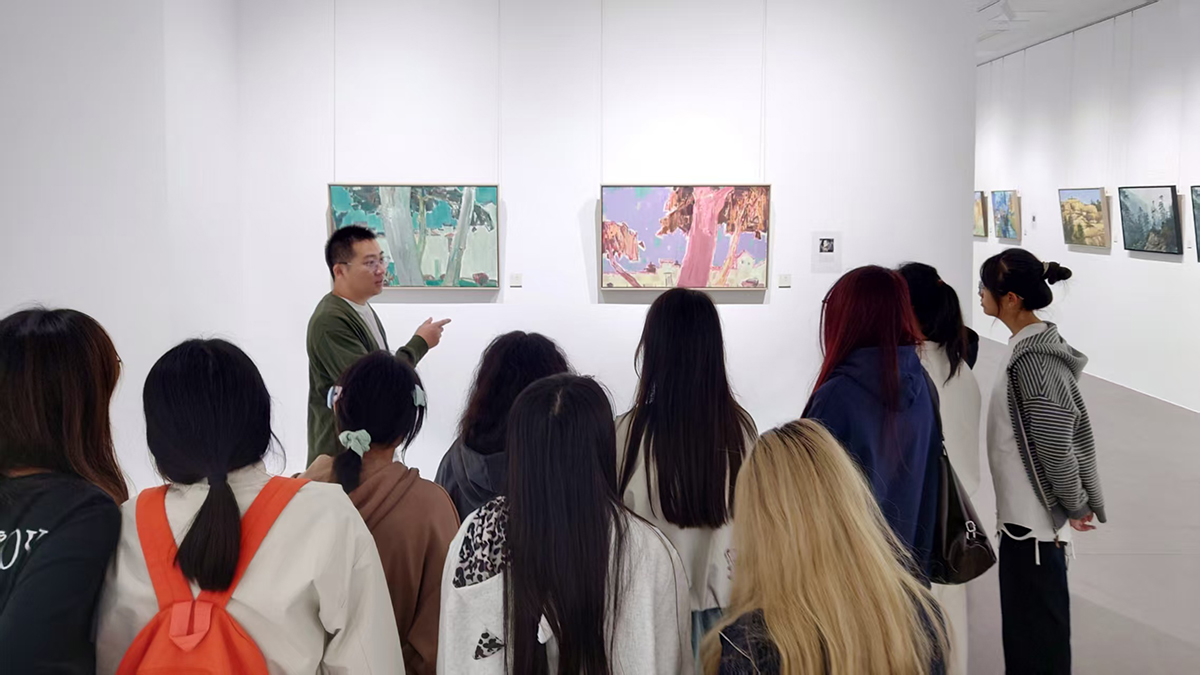 开幕式结束后,王治、陈权、赵康三位教师带领学生参观展览作品。在参观过程中,老师们结合自身创作经验,深入浅出地为学生讲解每一幅作品的创作手法、色彩运用以及背后的创作理念,帮助学生更好地理解油画艺术的精髓。学生们认真聆听老师的讲解,不时提出自己的疑问和见解,与老师展开积极互动。