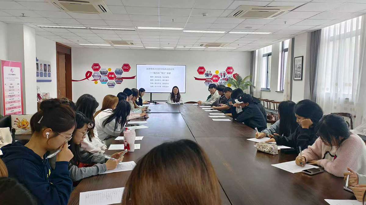 为积极响应学校“学风建设主题教育月”活动,帮助新生尽快适应大学学习节奏,掌握科学有效的学习方法,10月31日下午,法律事务253班举办了学风建设主题班会。班会由班长和学习委员共同主持,班主任全程参与指导,并邀请班助肖芹、艺术学院的优秀学长乔羽作为分享嘉宾,全班同学积极参与。