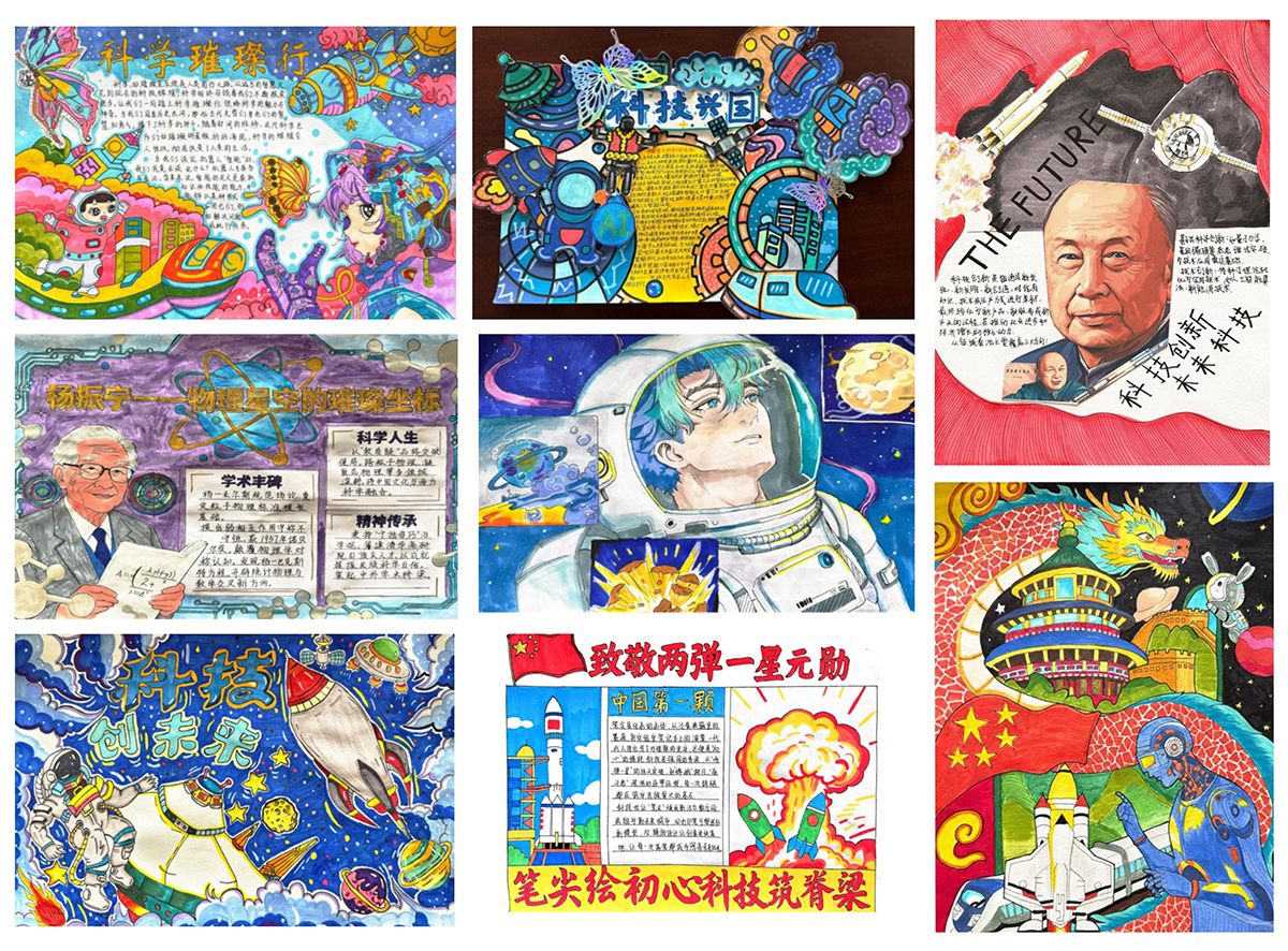 活动自10月15日开始以来,全体在校学生积极参与当中。一幅幅作品既是艺术的呈现,更是思想的表达,承载着青年一代对科学的敬畏、对初心的坚守和对未来的憧憬。作品展现了我国在航天、信息、医学等领域的辉煌成就,彰显科技自立自强的强大力量;同时关注身边科学现象与创新实践,倡导学以致用、知行合一的理念。