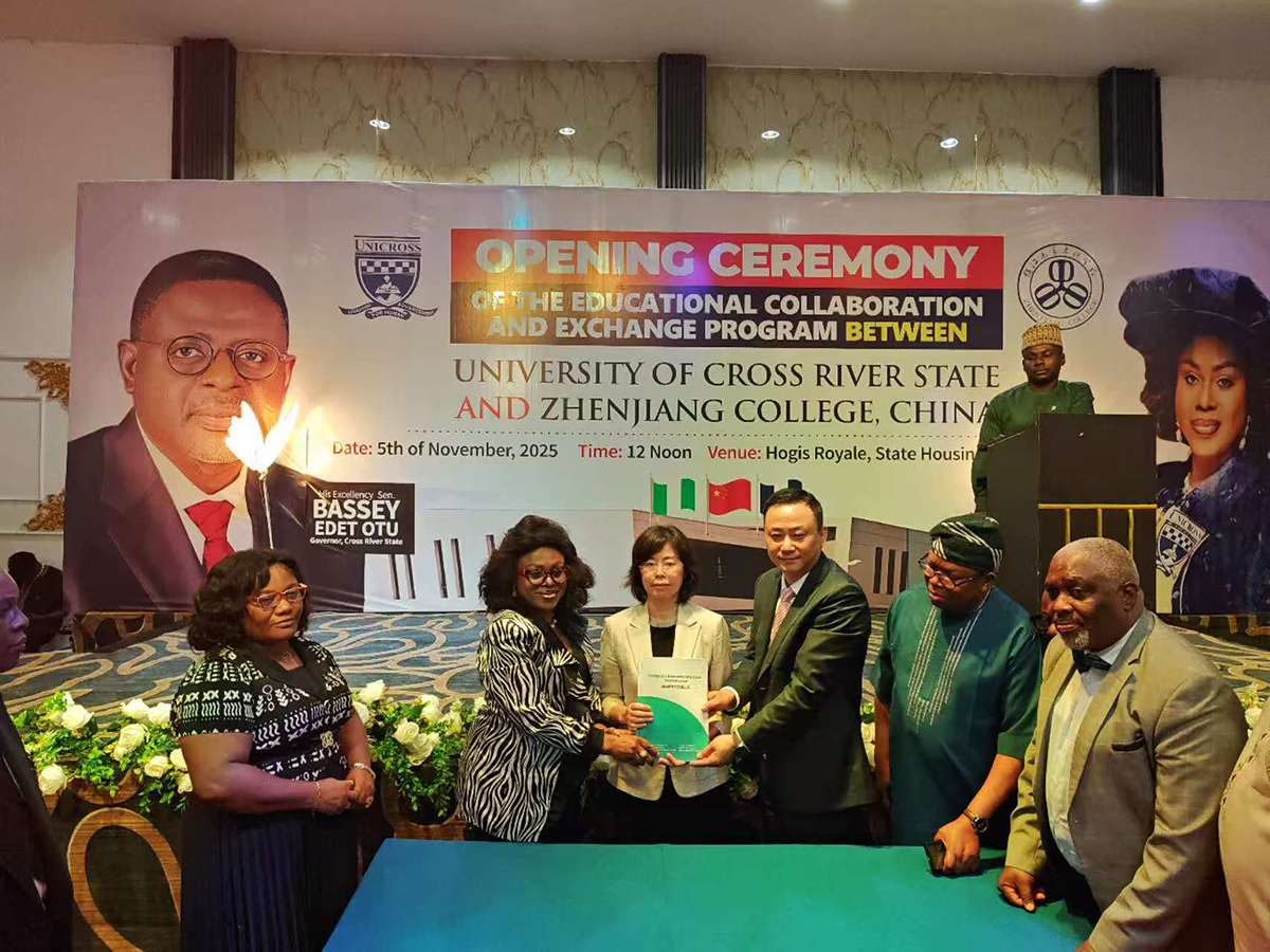 11月5日,代表团访问十字河州立大学,与校方领导就合作办学具体事项及《三方合作备忘录》条款进行细致磋商,并在联合办学、教学标准推广、数字化教学资源建设等方面达成共识。当日下午,“正则海外学堂”揭牌仪式成功举行,李莉校长、翟杰总经理与十字河州立大学校长Francisca Bassey分别致辞,并共同签署合作备忘录。该学堂将聚焦电子商务、医学护理、智能制造、新能源汽车等专业,逐步开展非学历教育、技能培训及学历教育,推动中国职教标准在尼本土化落地,打造中尼教育合作示范平台。