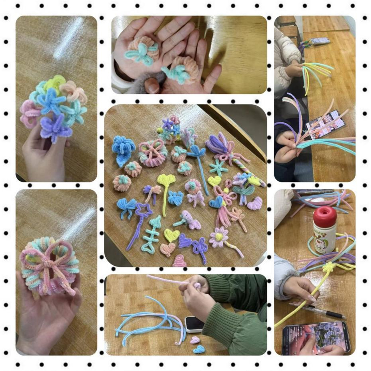 活动现场,同学们聚精会神,手指翻飞。一根根普普通通的毛绒扭扭棒,在他们的巧手下被弯折、缠绕、拼接,逐渐呈现出千姿百态的模样。有的同学创作出栩栩如生的小动物、奇花异草,充满童趣与生机;有的同学则构思精巧,制作出别致的首饰、桌面摆件,兼具审美与实用价值,整个活动区域洋溢着专注、轻松与欢声笑语,大家互相交流技巧,欣赏彼此作品,充分体验了手工创作的乐趣与成就感。