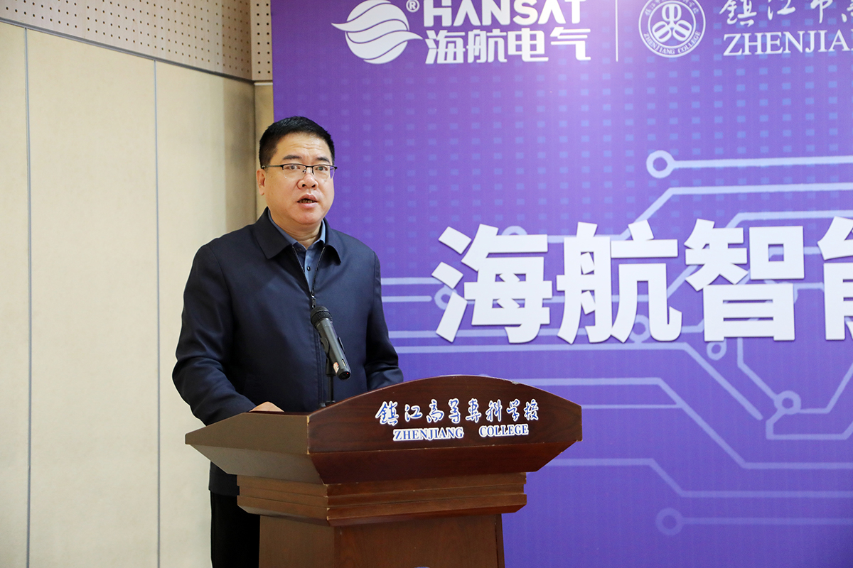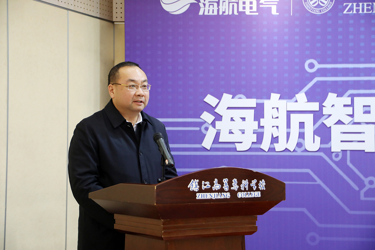 首先,镇江市高等专科学校副校长唐红雨致欢迎辞。他回顾了学校数十年来“立足镇江、服务区域、对接产业”的办学传统,并强调此次与海航电气共建产业学院,是响应国家深化产教融合号召的“生动实践”,也是今年6月学校与扬中市校地共同成立的镇江智能电气产教联合体的具体落地项目。双方将通过订单培养、师资共建、科研攻关等深度协作,实现“校企协同、育训并举”。