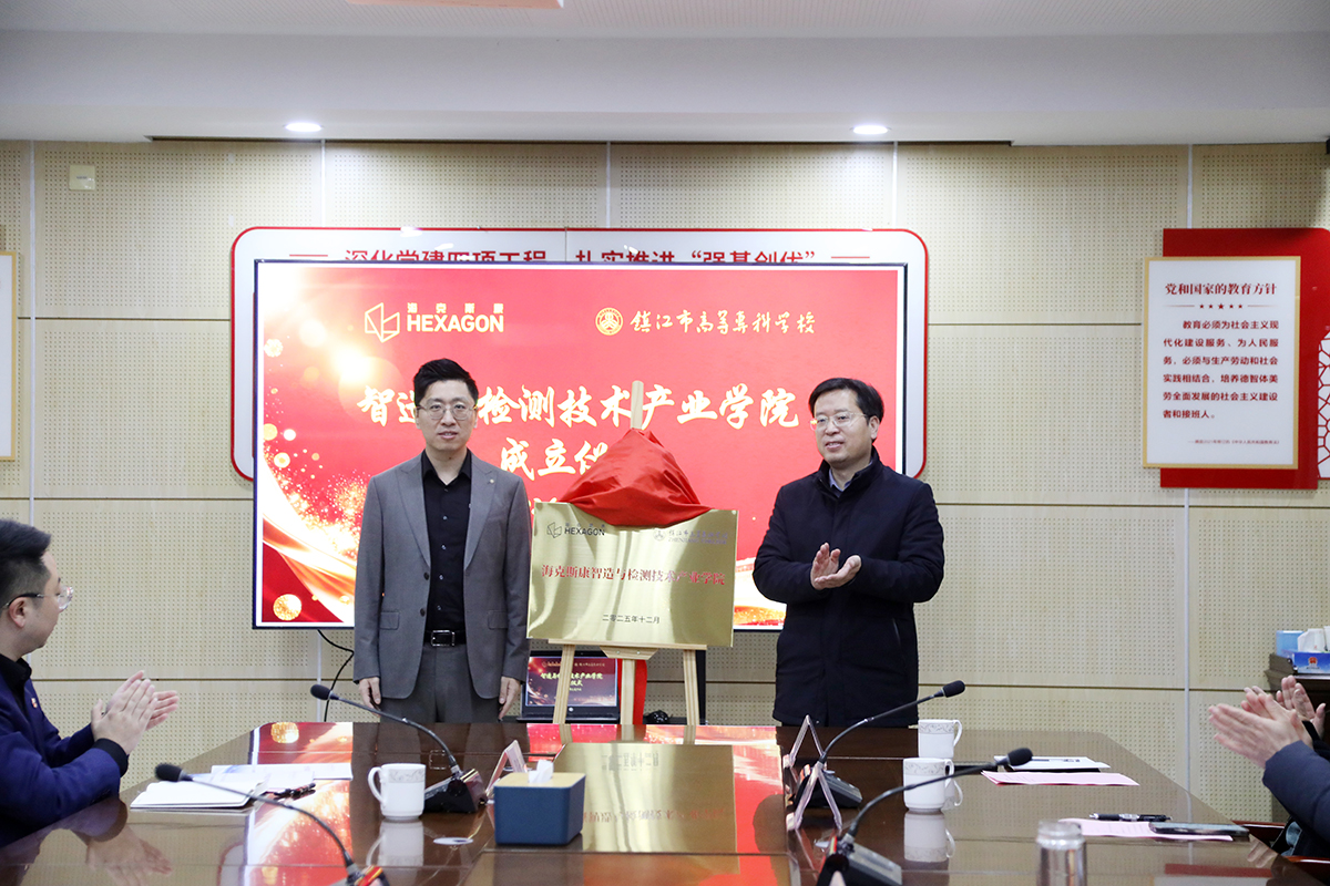 唐红雨副校长与孙东辰总经理共同为“镇江高专—海克斯康智造与检测技术产业学院”揭牌