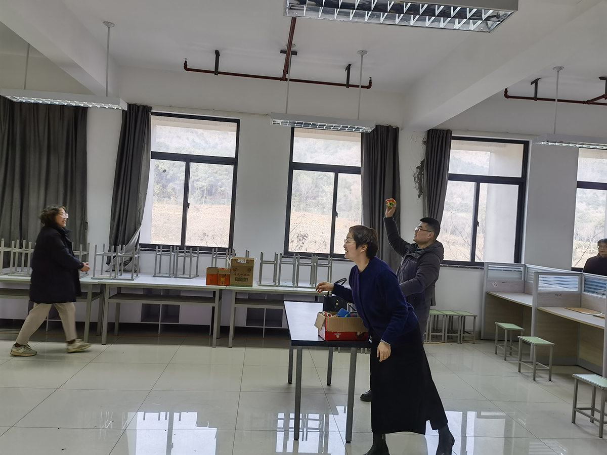 室内项目则充满了轻松愉悦的休闲氛围,沙包高尔夫与古风投壶两项特色项目深受教职工喜爱。沙包高尔夫项目中,教职工们屏气凝神,精准控制投掷力度与方向,让沙包沿着设定路线“进球”,每一次成功都伴随着欢快的笑声;古风投壶项目颇具文化韵味,大家手持羽箭,瞄准壶口从容投掷,在体验传统民俗乐趣的同时,也锻炼了专注力与手眼协调能力。参赛教职工们全身心投入,现场洋溢着团结协作、欢乐祥和的浓厚氛围。
