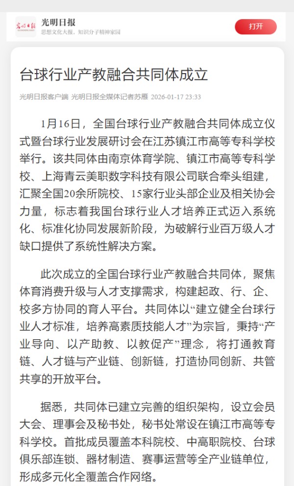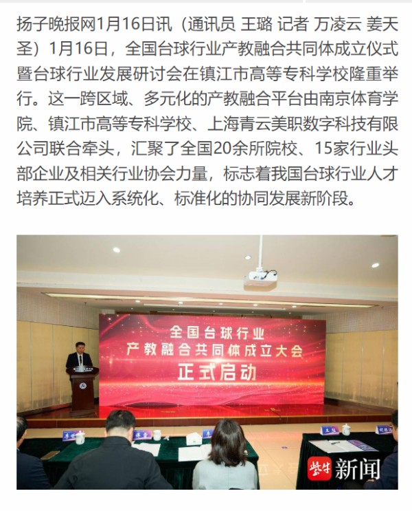光明日报|荔枝新闻|我苏网|紫牛新闻|台球行业产教融合共同体成立