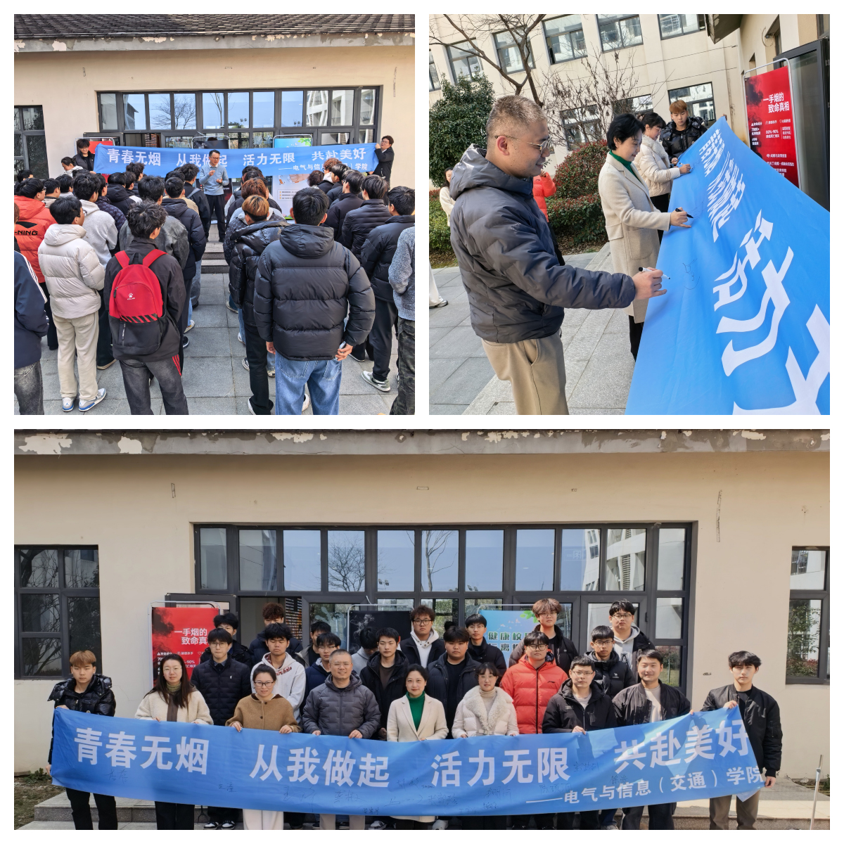 活动尾声,全体人员在“青春无烟 从我做起;活力无限 共赴美好”主题横幅上签名,承诺以“雷锋精神”为引领,将控烟行动融入日常生活,争做无烟校园的践行者、守护者。