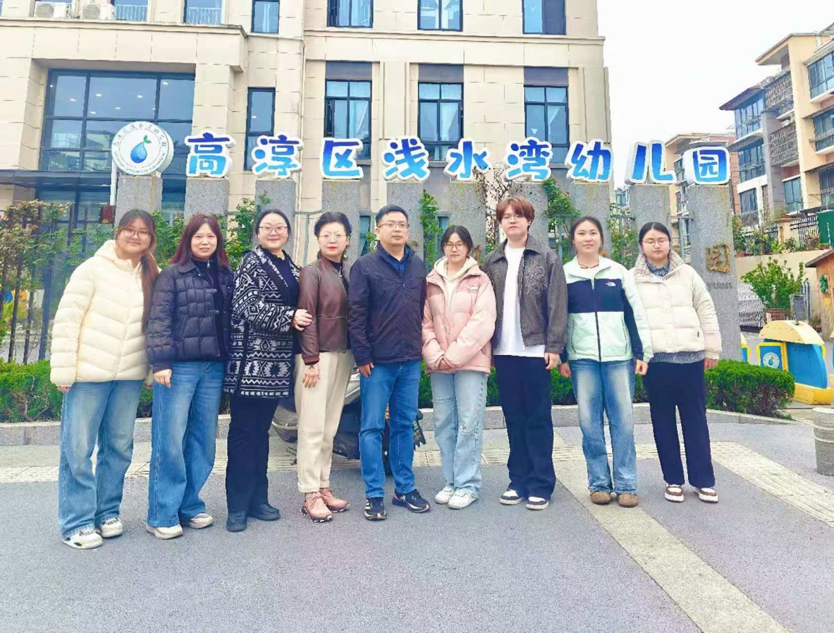 院长束永祥等一行4人与2021级顶岗实习学生合影 此次顶岗实习巡访,既强化了对实习学生的过程管理与精准指导,也进一步密切了学校与用人单位的合作纽带。下一步,学院将持续健全校地协同育人机制,不断优化人才培养模式,为学前教育领域培育更多高素质应用型幼教人才筑牢根基。