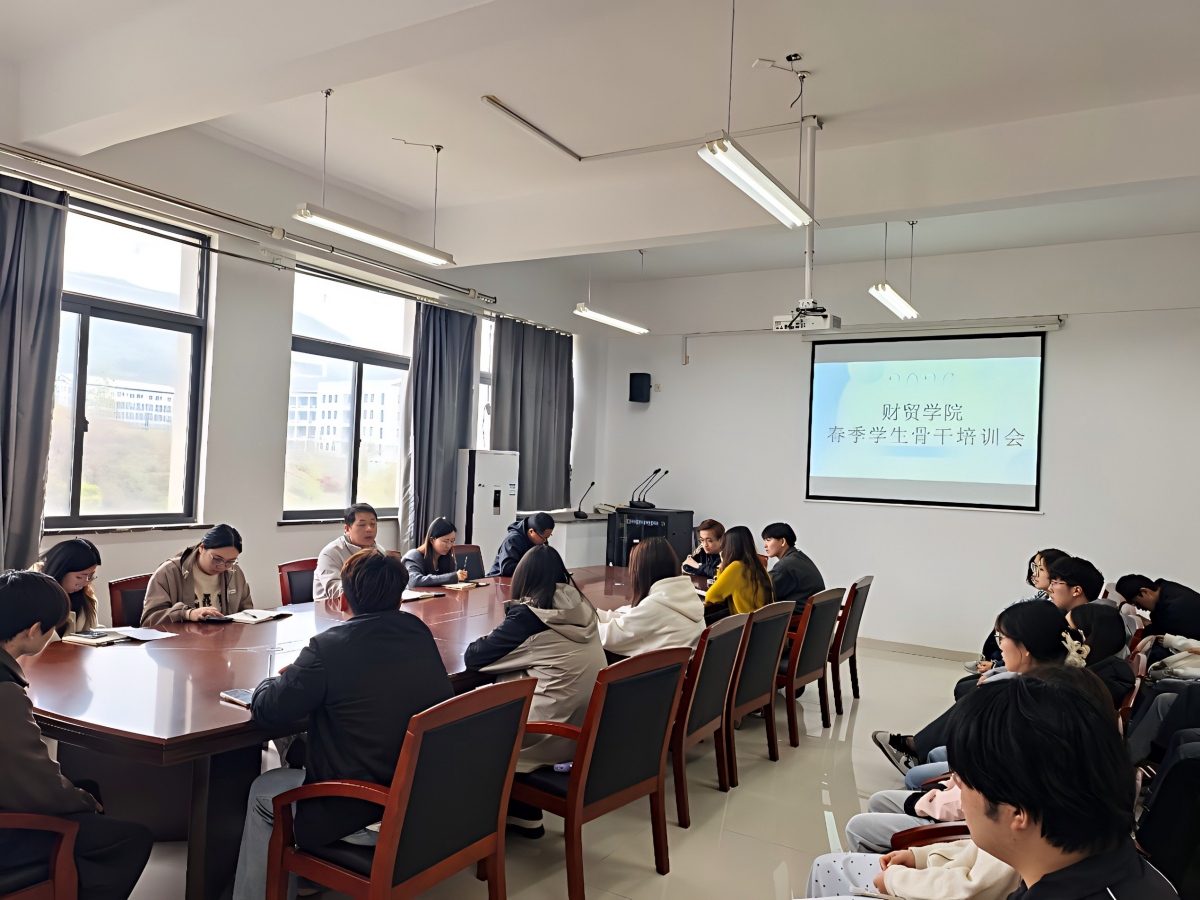 为进一步夯实学院学生骨干队伍建设,强化责任担当,提升工作履职能力,4月14日中午,财经商贸学院召开学生骨干春季培训会。学院党总支副书记刘曦,学工团队老师、学院在校班级班长、团支书和学生分会学生骨干共计50多人参加培训。