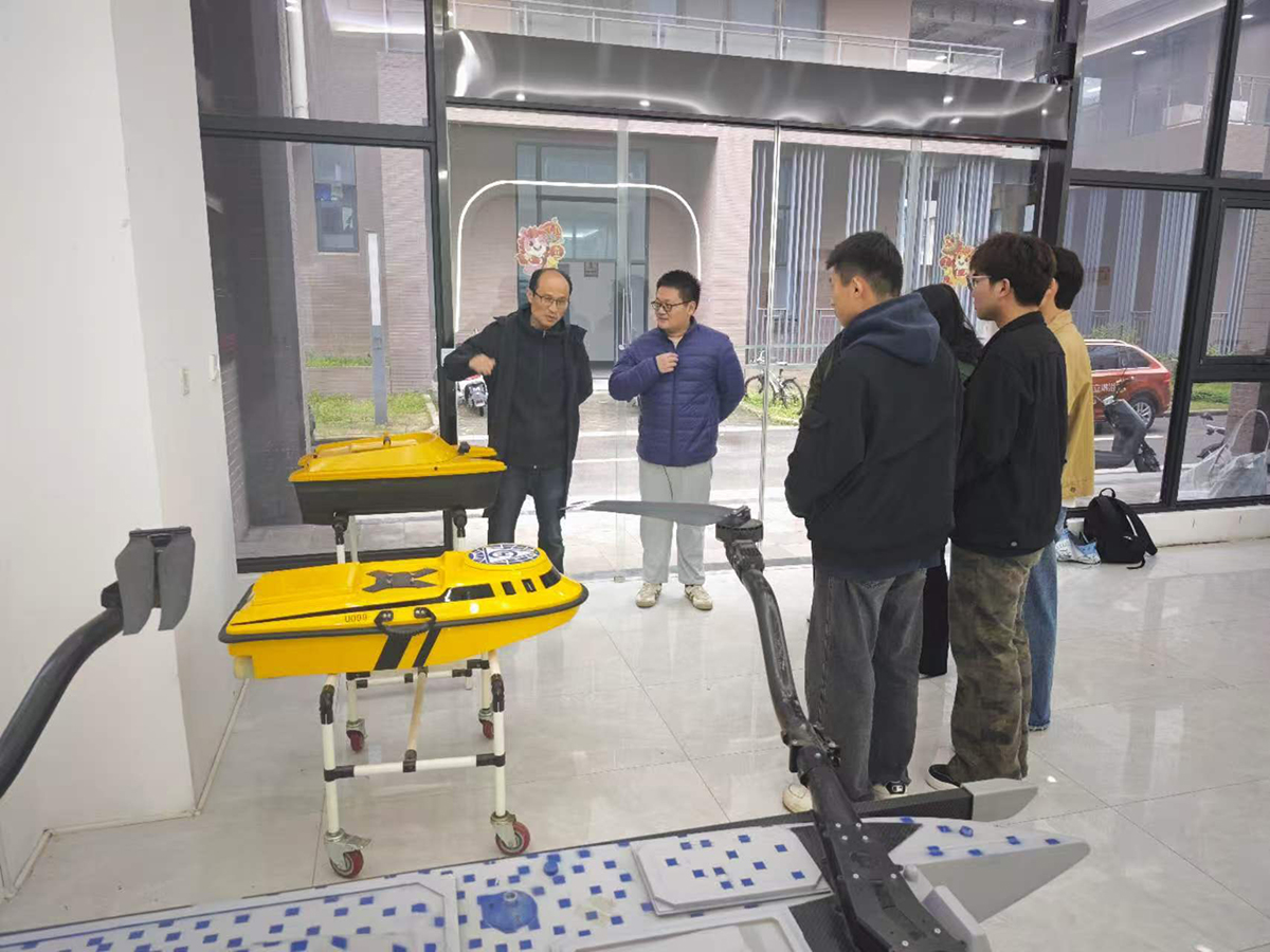在企业总工程师朱晓斌的亲自引领下,师生一同参观了产品模型展间,亲身感受企业创新成果。其间,学院人工智能专业教师李相程与企业工程师凌雷鸣紧密互动,不仅共同深入探讨了机器视觉、自主决策等前沿AI算法在无人艇导航与避障中的实际应用场景,李相程老师还结合企业实际需求,详细讲解了这些算法的优化方向与潜在突破点,真正实现了学术理论与产业实践的深度融合。