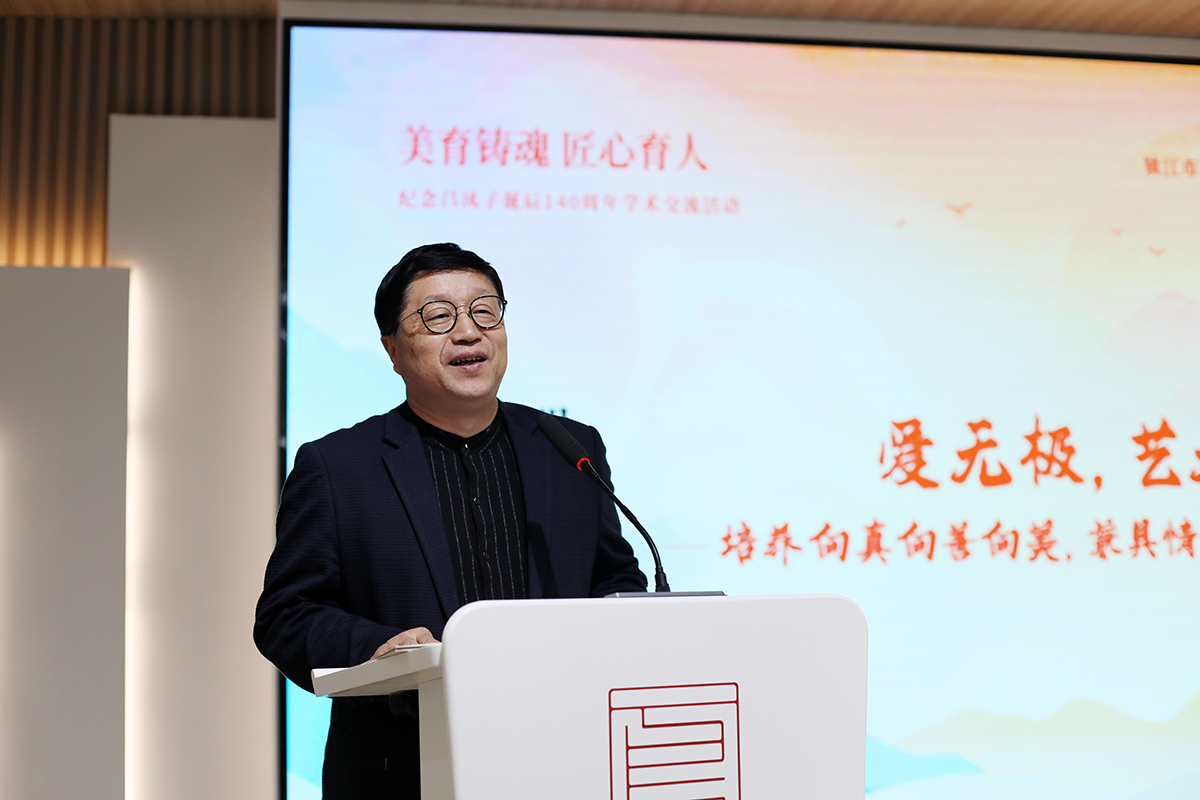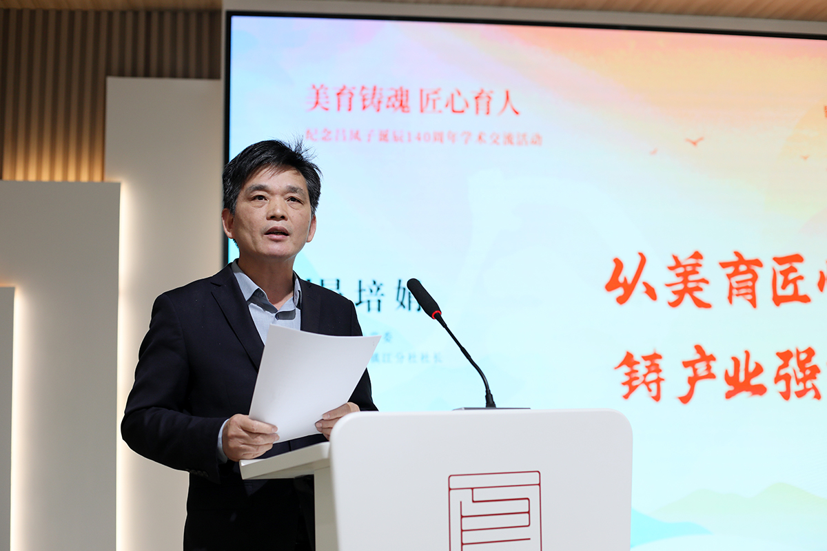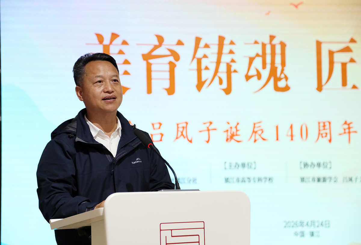 我校副校长唐红雨代表学校致辞。唐红雨指出,2026年是我国近现代职业教育先驱、卓越美术教育家、艺术大师吕凤子先生诞辰140周年。凤先生一生秉持“爱无涯,美无极”的精神,将深沉的家国大爱融入教育实践与艺术创作,提出了“人生制作即艺术制作”这一核心理念,将个体的生命成长、人格修养与艺术创造高度统一,以美滋养心灵、以匠心锤炼人生,为后世留下了宝贵的教育思想和精神财富。
