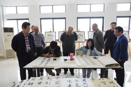 4月24日上午,教育部原党组副书记、常务副部长、中国教育书画协会会长张保庆,第五届、第六届中国书法家协会副主席、中国教育书画协会副主席言恭达,中国教育书画协会秘书长范水等书画名家来我校视察“大众篆刻”工作开展情况。镇江市篆刻艺术推广协会会长冯士超、学校全体校领导全程陪同视察。