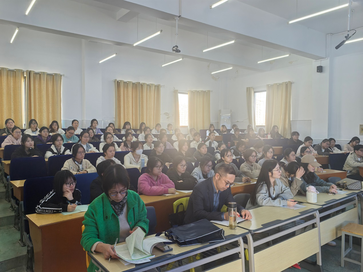 11月4日,江南大学教授王芳应邀到我校在会议中心C103室开展主题为“一曲知江南——《无锡景》的前世今生与审美之旅”讲座。140余名师生代表现场聆听。校党委委员、组织统战部部长柏林主持讲座。 讲座现场 王芳教授主要从事传统音乐学与音乐教育研究,主持多项国家及省部级科研项目,长期致力于锡剧等非物质文化遗产的活态传承。讲座开始现场座无虚席,师生认真聆听王芳教授的分享。王教授聚焦《无锡景》,指
